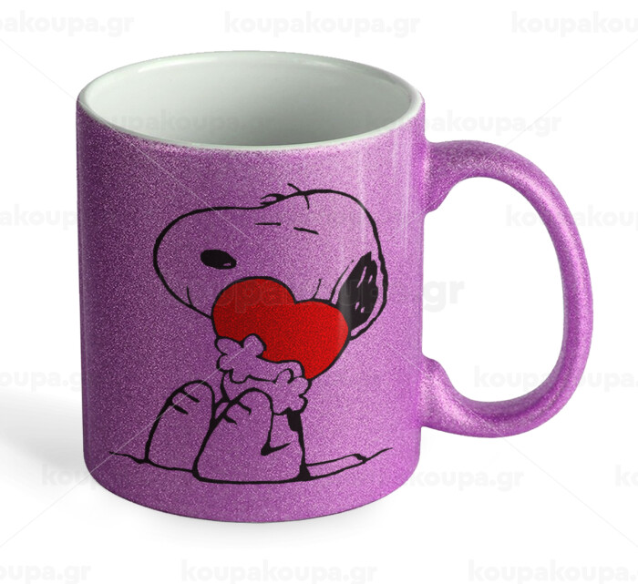 Snoopy, Κούπα Μωβ Glitter που γυαλίζει, κεραμική, 330ml