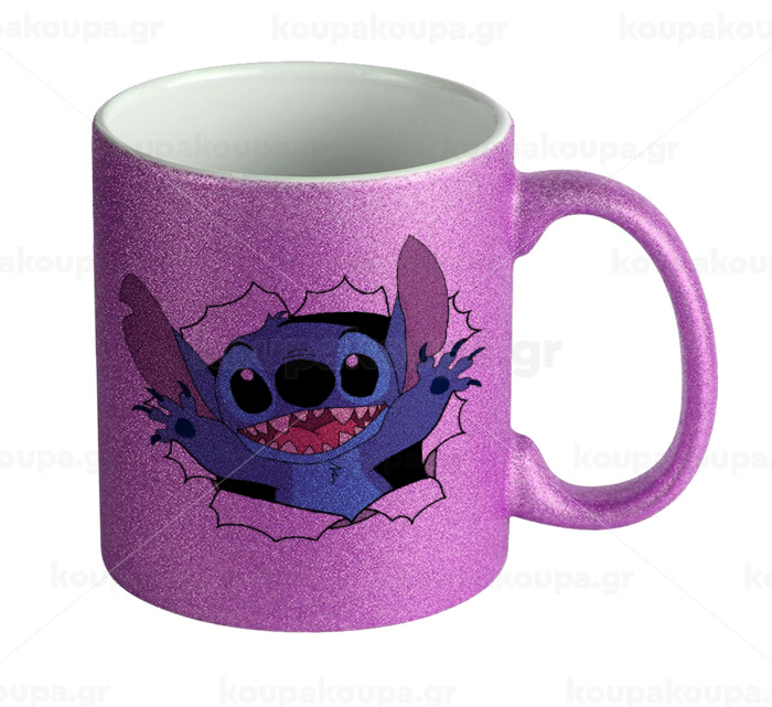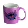 Stitch hello!!!, Κούπα Μωβ Glitter που γυαλίζει, κεραμική, 330ml