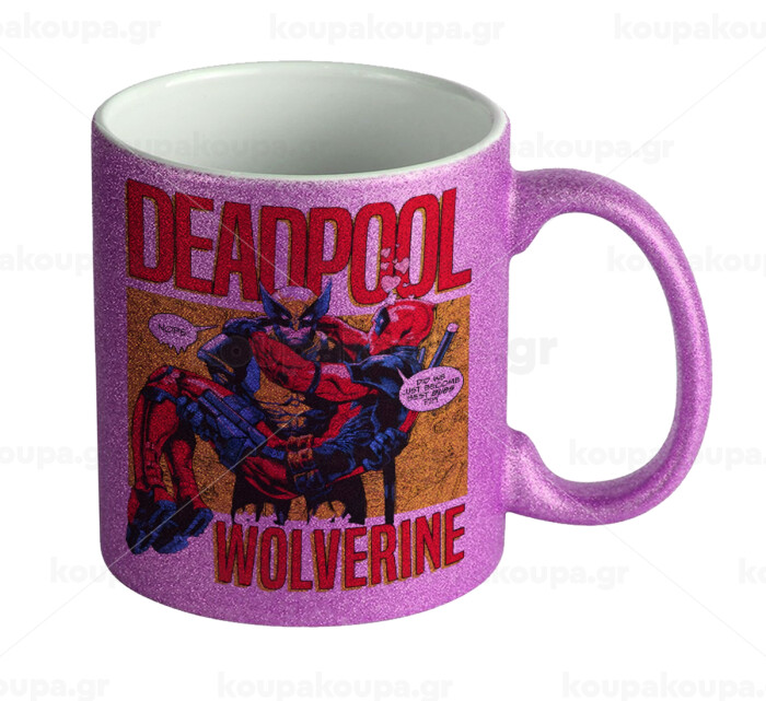 Superhero Deadpool Wolverine, Κούπα Μωβ Glitter που γυαλίζει, κεραμική, 330ml