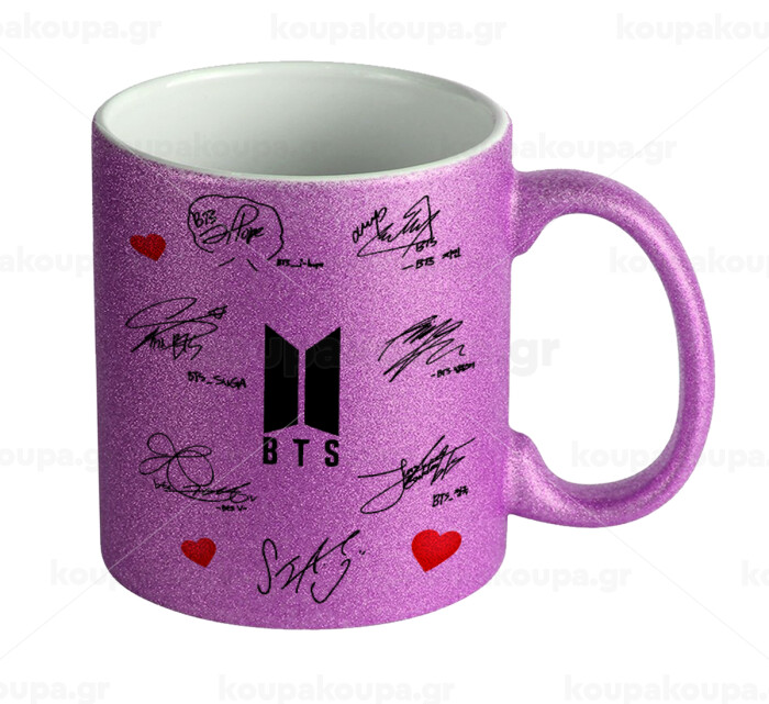 BTS signatures, Κούπα Μωβ Glitter που γυαλίζει, κεραμική, 330ml