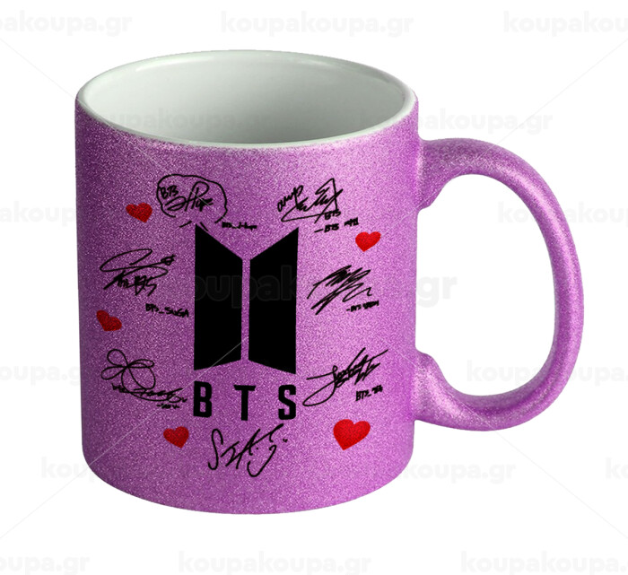 BTS signs, Κούπα Μωβ Glitter που γυαλίζει, κεραμική, 330ml