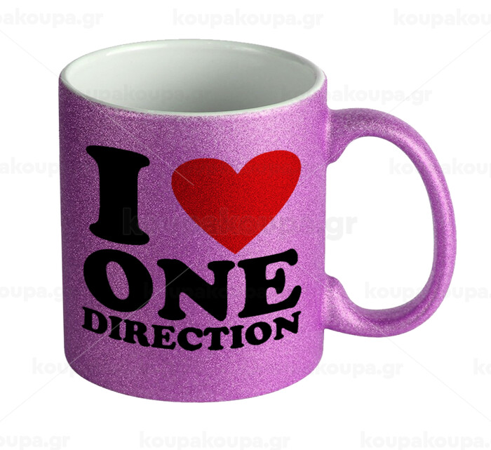 I Love, One Direction, Κούπα Μωβ Glitter που γυαλίζει, κεραμική, 330ml