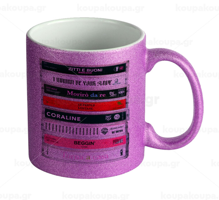 Maneskin Cassette, Κούπα Μωβ Glitter που γυαλίζει, κεραμική, 330ml