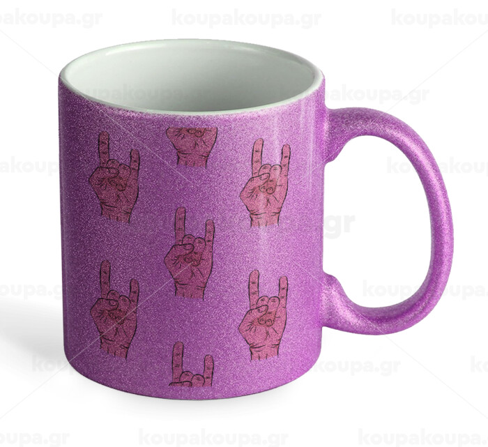 Rock hands, Κούπα Μωβ Glitter που γυαλίζει, κεραμική, 330ml