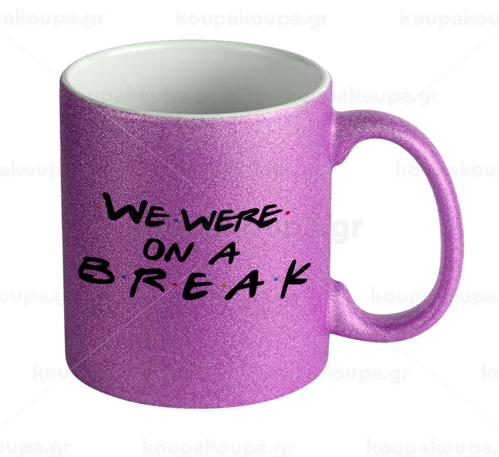 Friends we were on a break, Κούπα Μωβ Glitter που γυαλίζει, κεραμική, 330ml
