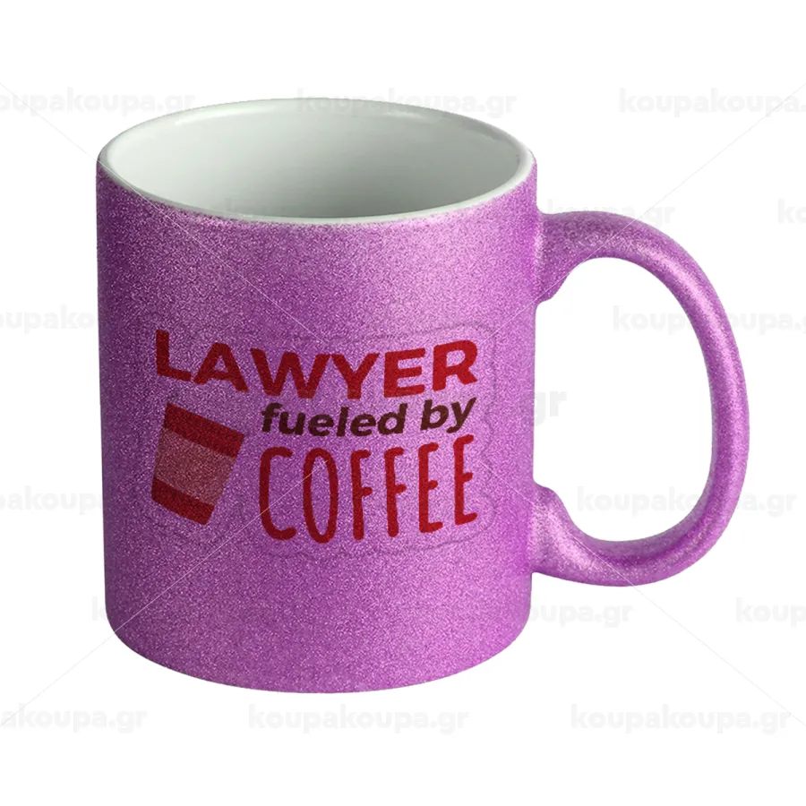 Lawyer fueled by coffee, Κούπα Μωβ Glitter που γυαλίζει, κεραμική, 330ml
