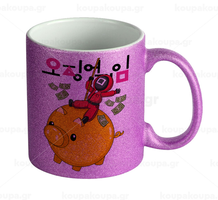 Squid game money pig, Κούπα Μωβ Glitter που γυαλίζει, κεραμική, 330ml