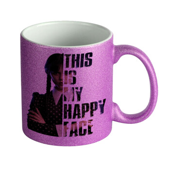 Wednesday, This is my happy face, Κούπα Μωβ Glitter που γυαλίζει, κεραμική, 330ml