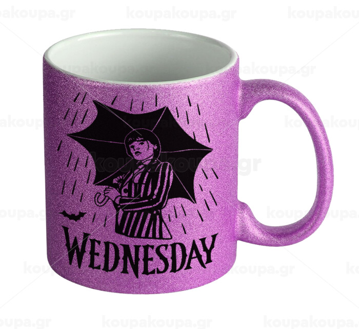 Wednesday Addams, Κούπα Μωβ Glitter που γυαλίζει, κεραμική, 330ml