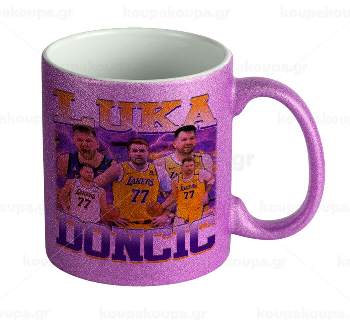 Luka Doncic Basketball , Κούπα Μωβ Glitter που γυαλίζει, κεραμική, 330ml