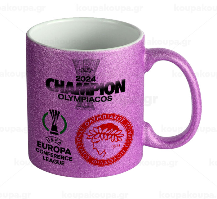 Olympiacos UEFA Europa Conference League Champion 2024, Κούπα Μωβ Glitter που γυαλίζει, κεραμική, 330ml