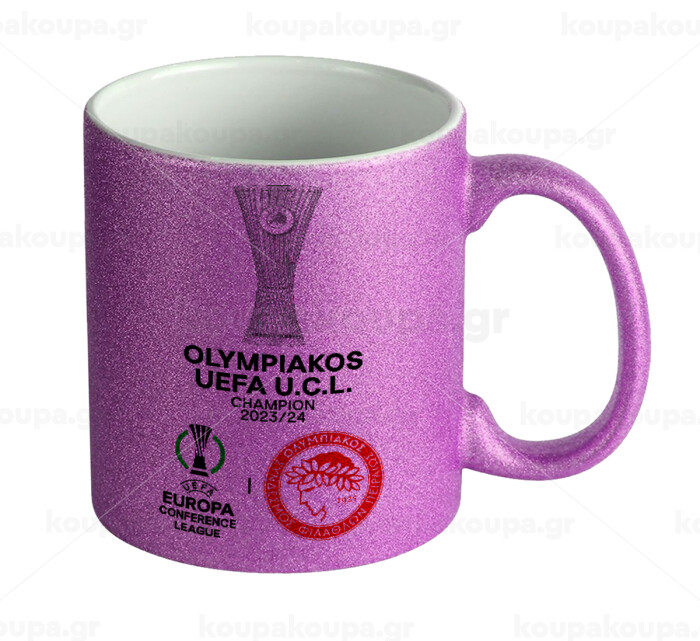 Olympiacos UEFA Europa Conference League Champion 2023/24, Κούπα Μωβ Glitter που γυαλίζει, κεραμική, 330ml
