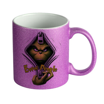 Grinch, eww people, Κούπα Μωβ Glitter που γυαλίζει, κεραμική, 330ml