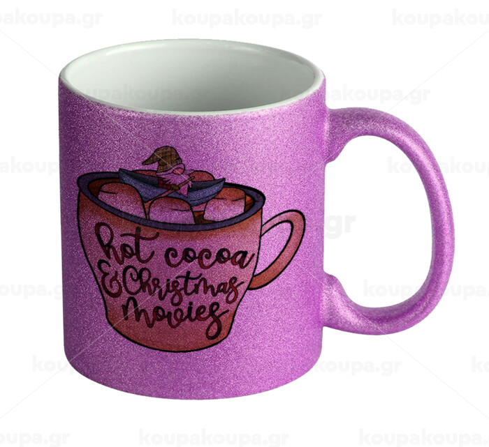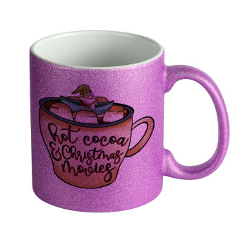 Hot Cocoa And Christmas Movies, Κούπα Μωβ Glitter που γυαλίζει, κεραμική, 330ml