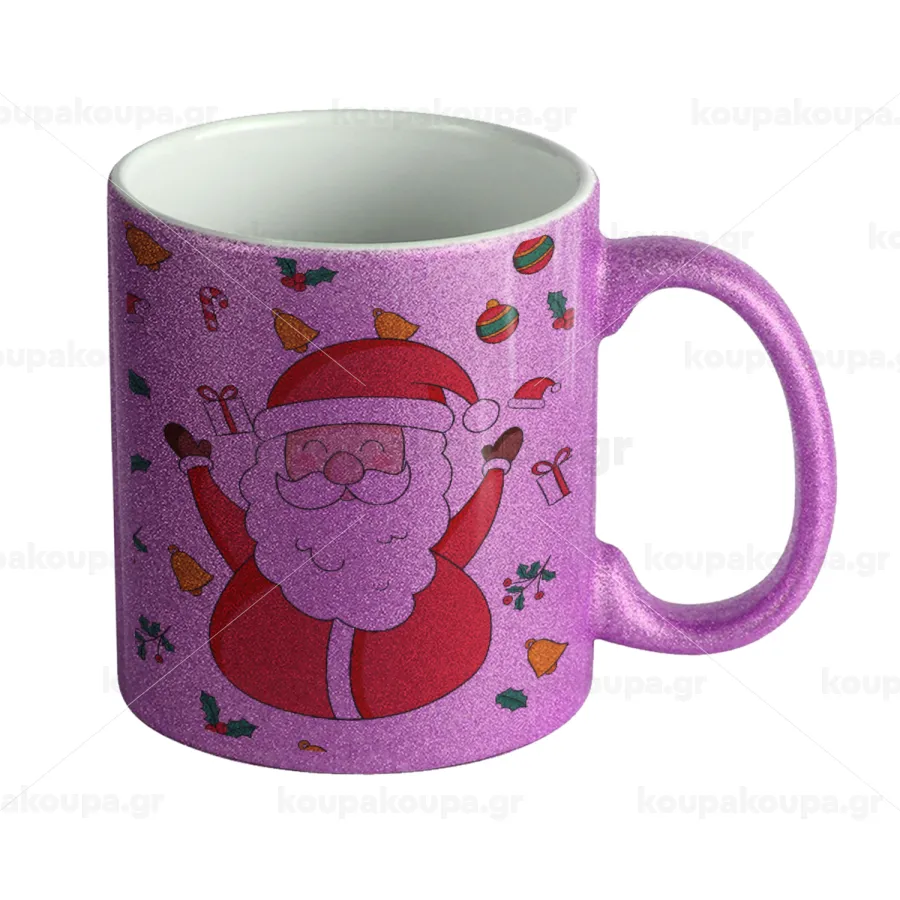 Santa Claus gifts, Κούπα Μωβ Glitter που γυαλίζει, κεραμική, 330ml
