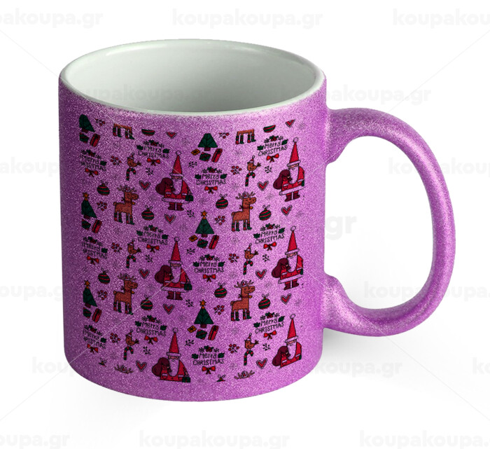 Santas, Deers & Trees, Κούπα Μωβ Glitter που γυαλίζει, κεραμική, 330ml
