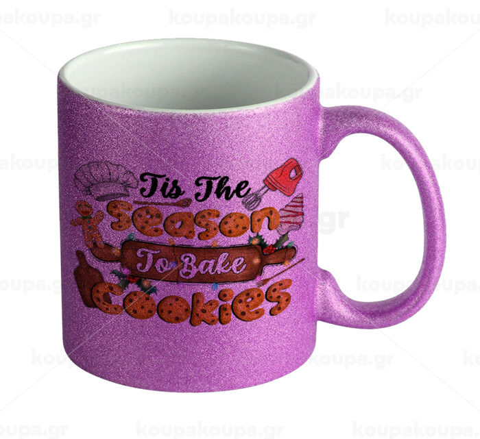 Tis The Season To Bake Cookies, Κούπα Μωβ Glitter που γυαλίζει, κεραμική, 330ml