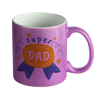 Μπαμπά είσαι για μετάλλιο, Κούπα Μωβ Glitter που γυαλίζει, κεραμική, 330ml