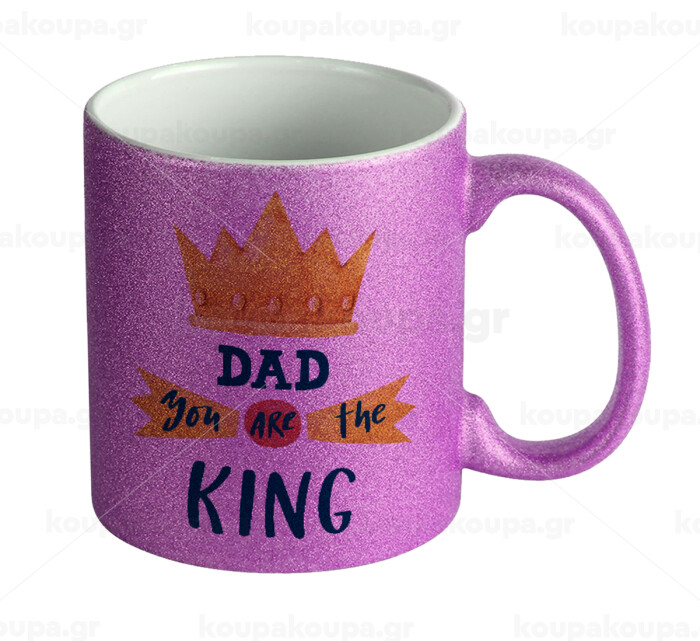 Dad you are the King, Κούπα Μωβ Glitter που γυαλίζει, κεραμική, 330ml