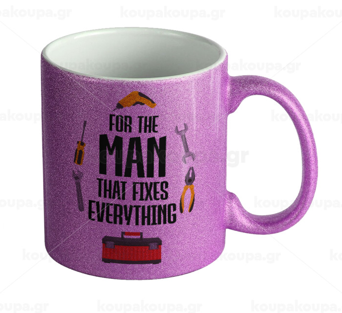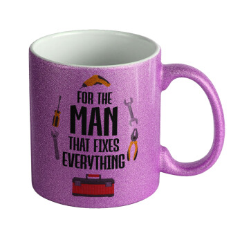 For the man that fixes everything!, Κούπα Μωβ Glitter που γυαλίζει, κεραμική, 330ml