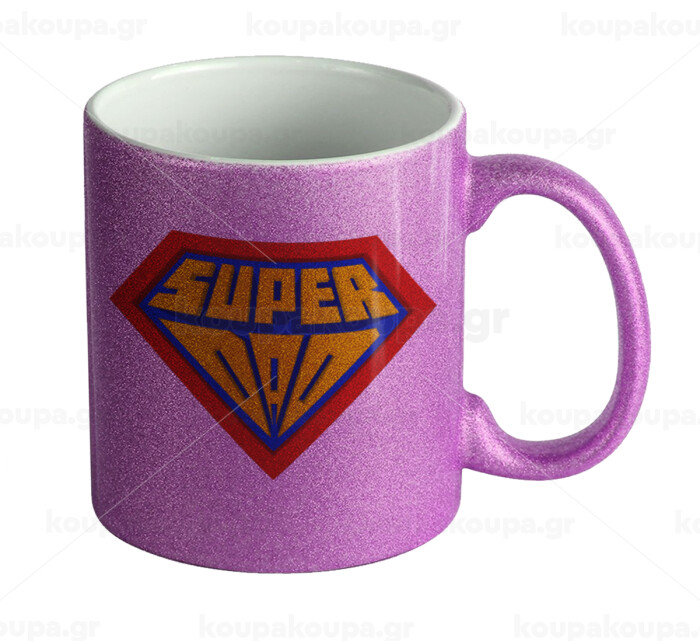 Super Dad 3D, Κούπα Μωβ Glitter που γυαλίζει, κεραμική, 330ml