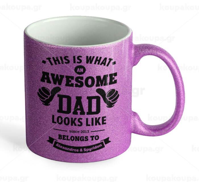 This is what an Awesome DAD looks like, Κούπα Μωβ Glitter που γυαλίζει, κεραμική, 330ml