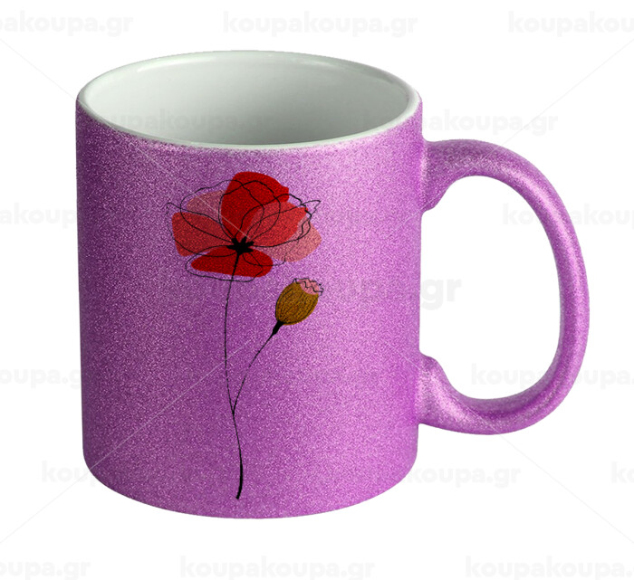 Red poppy flowers papaver, Κούπα Μωβ Glitter που γυαλίζει, κεραμική, 330ml