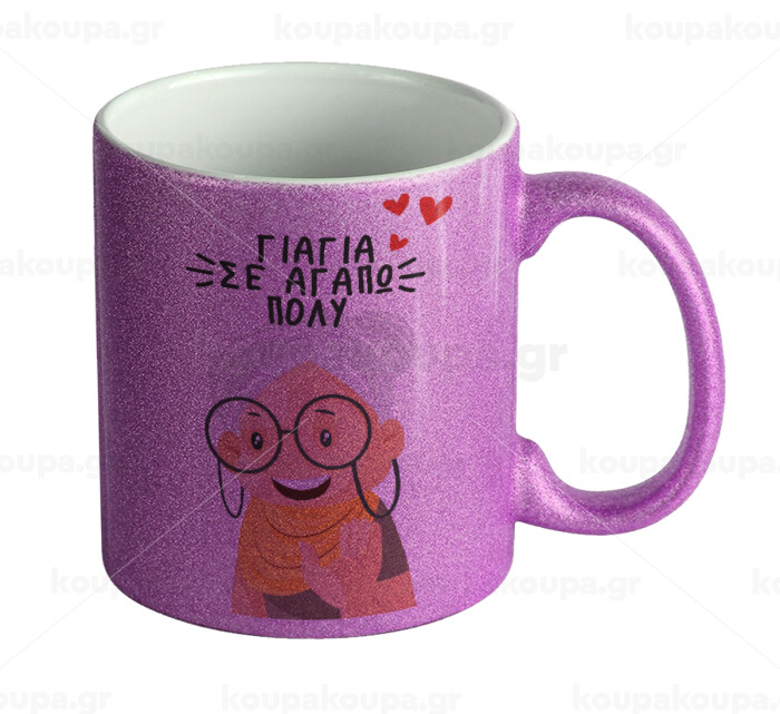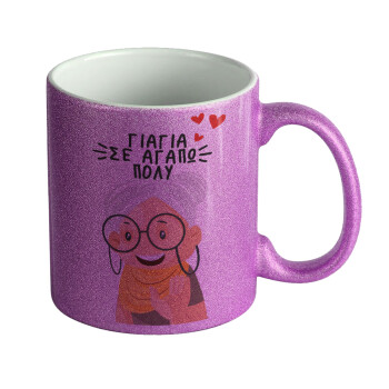 Γιαγιά σε αγαπώ πολύ!, Κούπα Μωβ Glitter που γυαλίζει, κεραμική, 330ml