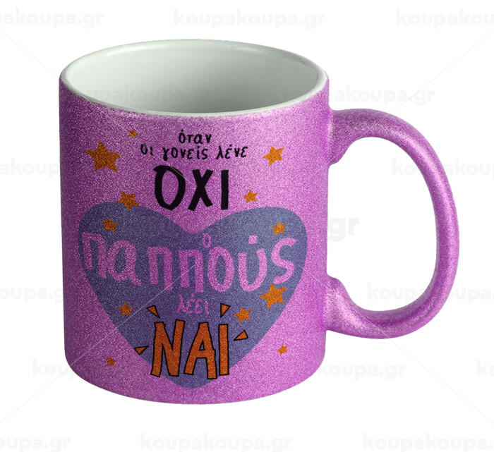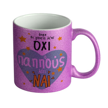 Όταν οι γονείς λένε ΟΧΙ, ο παππούς λέει ΝΑΙ, Κούπα Μωβ Glitter που γυαλίζει, κεραμική, 330ml