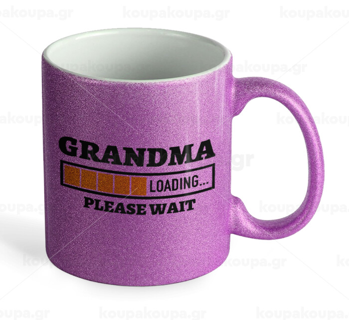 Grandma Loading, Κούπα Μωβ Glitter που γυαλίζει, κεραμική, 330ml