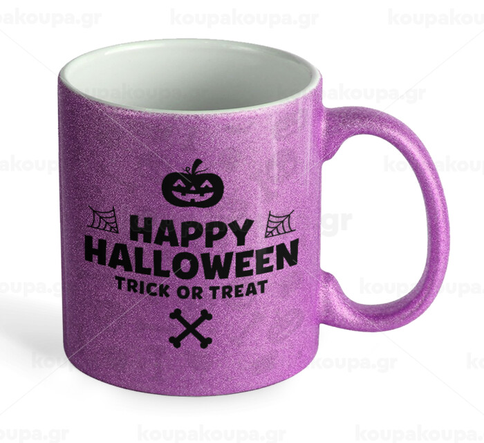 Happy Halloween pumpkin, Κούπα Μωβ Glitter που γυαλίζει, κεραμική, 330ml