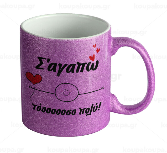 Σ΄αγαπώ τόοοοσο πολύ (Αγόρι)!!!, Κούπα Μωβ Glitter που γυαλίζει, κεραμική, 330ml