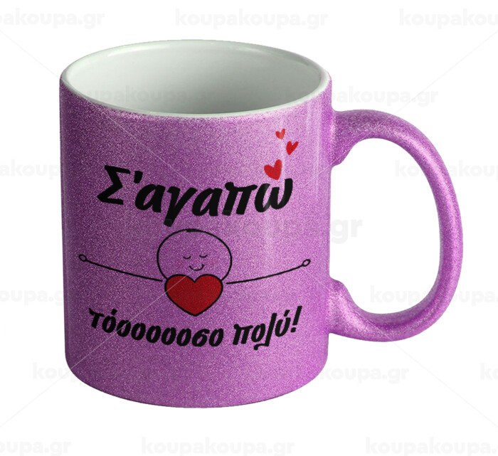 Σ΄αγαπώ τόοοοσο πολύ (Κορίτσι)!!!, Κούπα Μωβ Glitter που γυαλίζει, κεραμική, 330ml