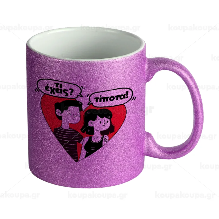 Τι έχεις? Τίποτα!, Κούπα Μωβ Glitter που γυαλίζει, κεραμική, 330ml