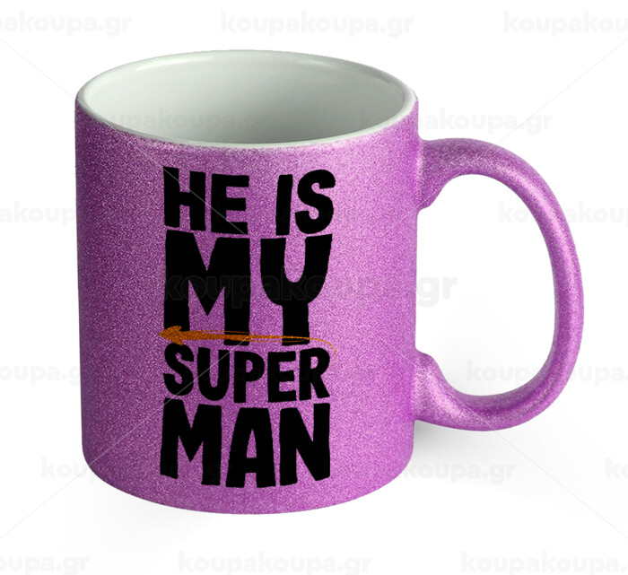 He is my superman, Κούπα Μωβ Glitter που γυαλίζει, κεραμική, 330ml