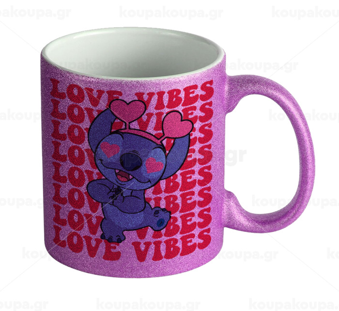 Lilo & Stitch Love vibes, Κούπα Μωβ Glitter που γυαλίζει, κεραμική, 330ml
