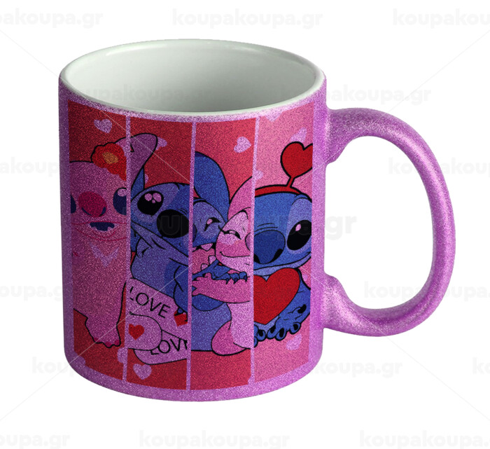 Lilo & Stitch Love, Κούπα Μωβ Glitter που γυαλίζει, κεραμική, 330ml