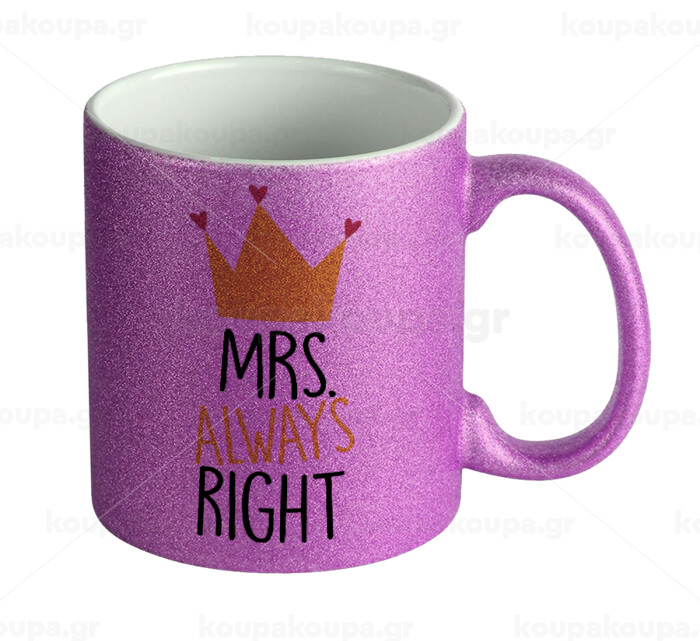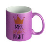 Mrs "Always" right, Κούπα Μωβ Glitter που γυαλίζει, κεραμική, 330ml