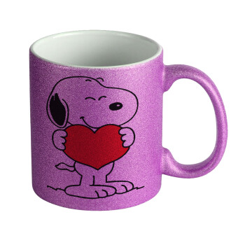 Snoopy takemy heart, Κούπα Μωβ Glitter που γυαλίζει, κεραμική, 330ml