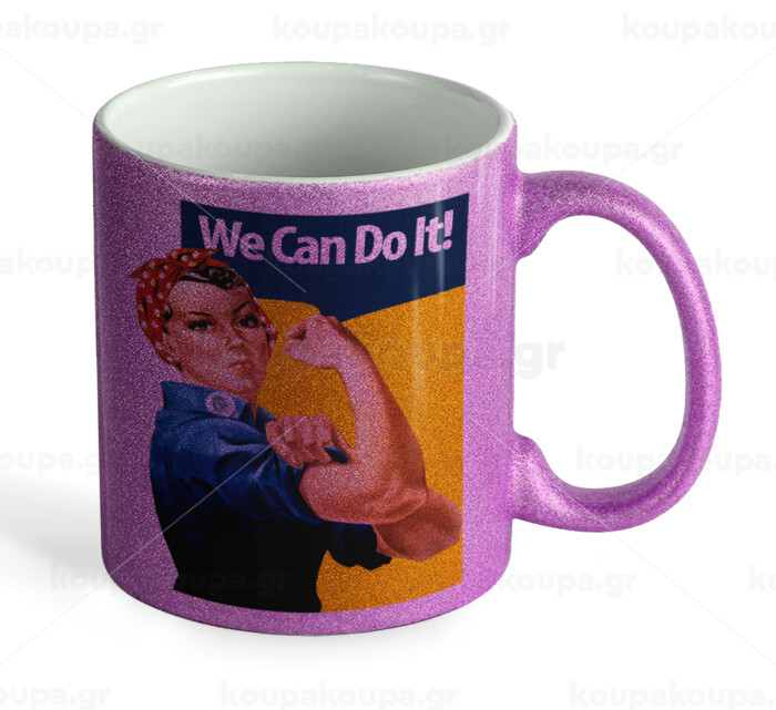 Rosie we can do it!, Κούπα Μωβ Glitter που γυαλίζει, κεραμική, 330ml