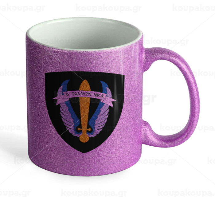Έμβλημα Μονάδων Καταδρομών Ο Τολμων Νικα - Λοκ, Κούπα Μωβ Glitter που γυαλίζει, κεραμική, 330ml