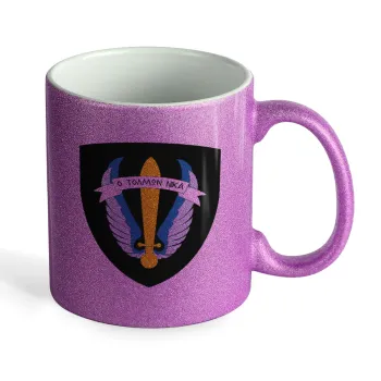 Έμβλημα Μονάδων Καταδρομών Ο Τολμων Νικα - Λοκ, Κούπα Μωβ Glitter που γυαλίζει, κεραμική, 330ml