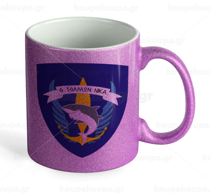 Hellas special force's shark, Κούπα Μωβ Glitter που γυαλίζει, κεραμική, 330ml