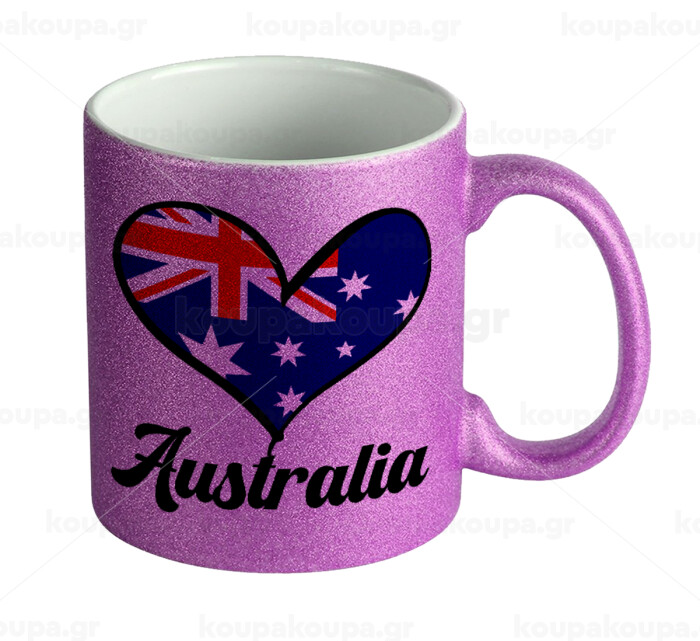 Australia flag, Κούπα Μωβ Glitter που γυαλίζει, κεραμική, 330ml