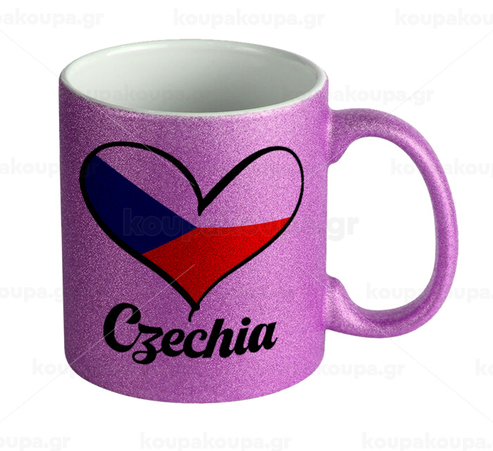 Czechia flag, Κούπα Μωβ Glitter που γυαλίζει, κεραμική, 330ml