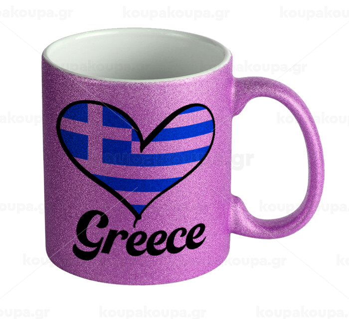 Greece flag, Κούπα Μωβ Glitter που γυαλίζει, κεραμική, 330ml