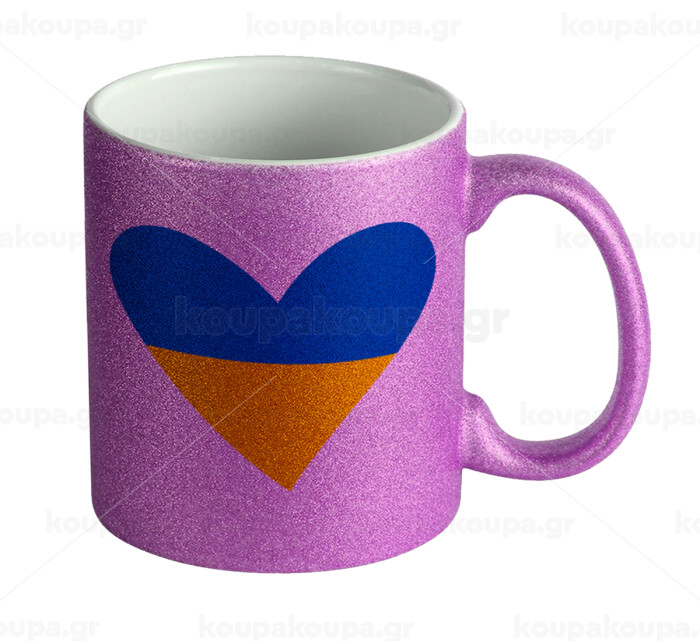 UKRAINE heart, Κούπα Μωβ Glitter που γυαλίζει, κεραμική, 330ml