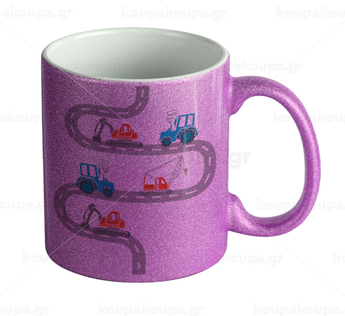 excavator along road, Κούπα Μωβ Glitter που γυαλίζει, κεραμική, 330ml