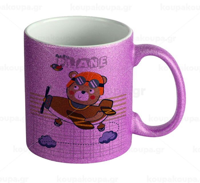 Kids Plane, Κούπα Μωβ Glitter που γυαλίζει, κεραμική, 330ml