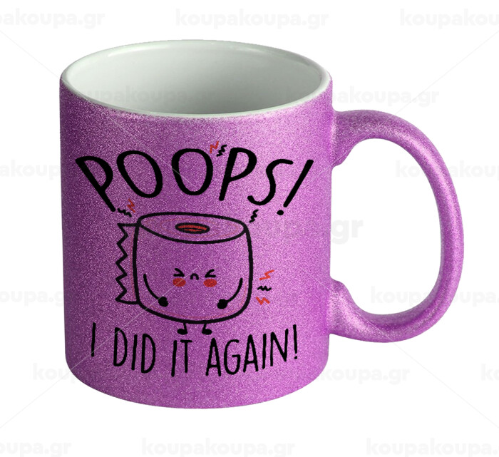 Poops!...I Did It Again, Κούπα Μωβ Glitter που γυαλίζει, κεραμική, 330ml